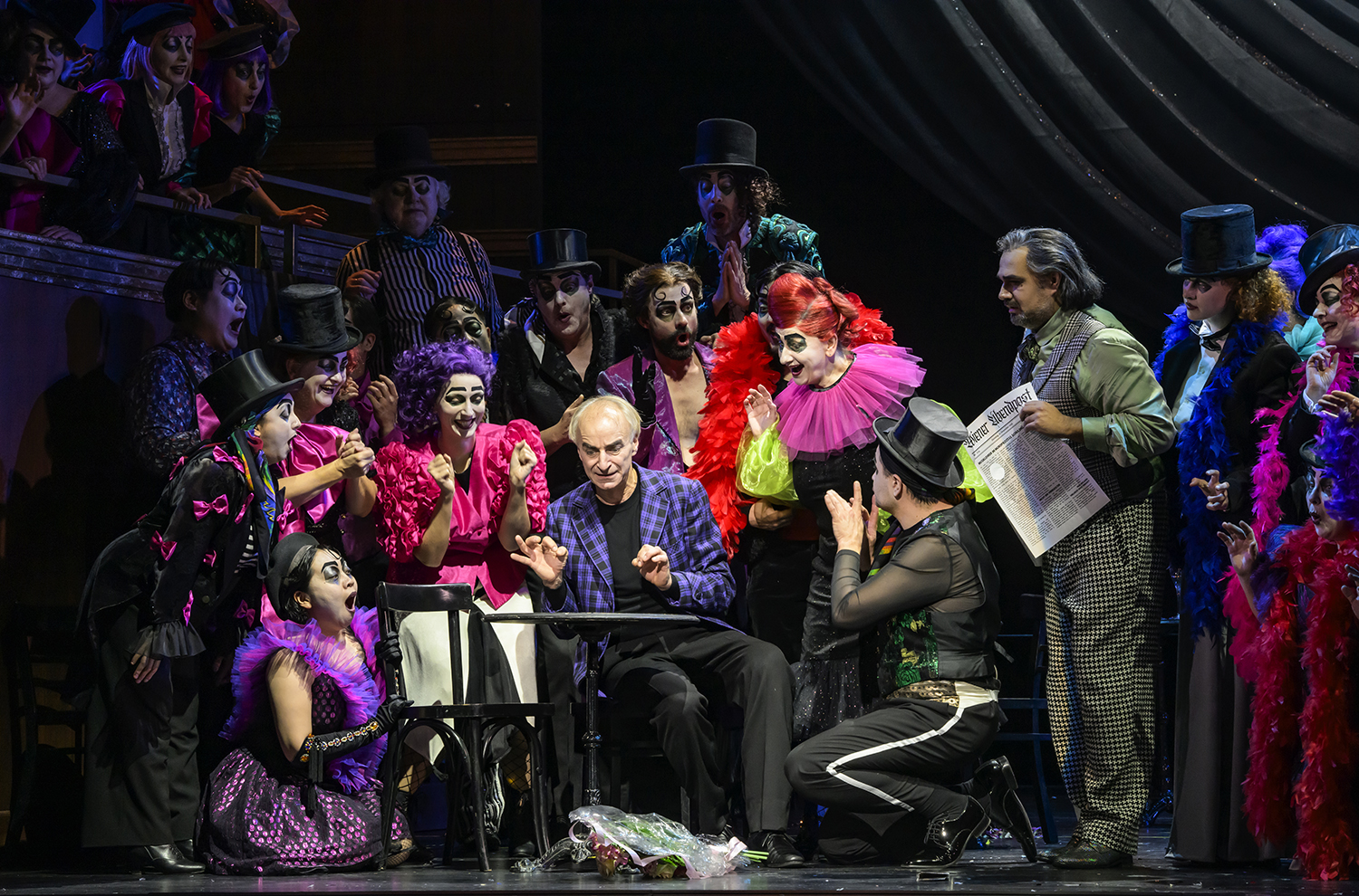Was ich beitragen kann, ist eine kulturkritische Assoziation. Denn während der Aufführung hatte ich wiederkehrend Déjà-vus. Da half der Sänger des Salvatore, Dietrich Henschel. Er spielt einen älteren Mann, einen berühmten Gesangslehrer, der mit sechzig einer sechzehnjährigen Schülerin verfällt. Das Libretto entstammt der Zeit des Präfeminismus, patriacharchale Schlüpfrigkeit wird ungebrochen präsentiert, ob vom Gesangslehrerkollegen oder den Gefängnisinsassenkollegen, Männer unter sich, Frauen unter ihnen. Das hört sich unangenehm an und ist noch immer Teil der Wirklichkeit. Natürlich stricken Frauen an ihrer Unterwerfung mit. Die Mutter liefert die Tochter schlüpfrig an, oder ist das die heutige Deutung der Inszenierung der Regisseurin? Was aber ist mit dem Mann, den Männern? Dietrich Henschel spielt den Alten alt, das Haar schütter und weiß, doch die Bewegungen quick. Das letzte Mal sah ich ihn vor 23 Jahren, an der Oper Köln, er spielte in Mozarts Don Giovanni die Hauptrolle, damals 35 Jahre alt, jugendlich, der kühne Regisseur war David Alden. Jene Aufführung inspirierte mich zu einer Reflexion auf das Verhältnis von Don Giovanni und Faust, auf Weibliches und Ewig-Weibliches. Ronnefeld und sein Librettist Richard Blettschacher, dem noch sehr viele Jahre vergönnt sind, waren damals jung. Sie blickten auf den Verfall des Alters und sein bisweilen widerwärtiges Sich-Aufbäumen. Jenseits der Lust- und Machtkritik kann man die Geschichte vielleicht auch existentiell lesen. Da verliebt sich einer unerwidert und wird daran verrückt. Das ist gewiss bitter. Hier wird es als Kunst, surreal in Bild, Bewegung und Musik, auf die Bühne gebracht. Das Verrückte wird dadurch nicht schön, aber wir können es ertragen. „Wir besuchen regelmäßig Prozesse! Wir können uns ein Urteil erlauben!“, singt der Chor zu Beginn. „Wir besuchen regelmäßig Theater! Wir können uns ein Urteil erlauben“, singt der Chor vor dem Finale. Der Chor ist ambivalent, der Chor sind wir, die Zuschauer. Kulturkritik beginnt mit Kulturanschauung.