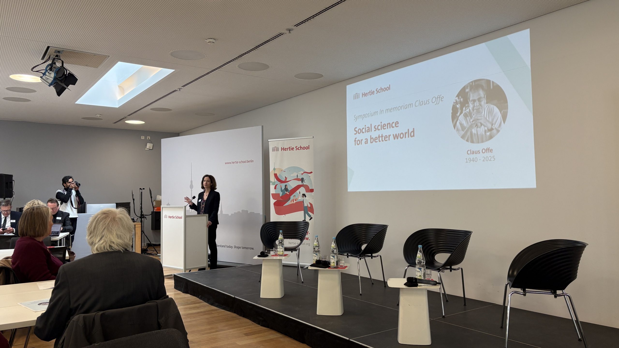 Claus Offe war ein Pionier des sozialökologischen Denkens, avant lettre, wie man sagt, wenn etwas noch nicht explizit war und in die Zukunft wies. Er starb am 1.10.2025 in Berlin, wo er 85 Jahre zuvor, im März 1940, geboren wurde. Die Hertie School of Governance in Berlin, an der er nach seiner Pensionierung von der Humboldt-Universität zu Berlin von 2005 bis 2012 lehrte, richtete zu seiner Ehre und Erinnerung am 27./28. März 2026 ein Symposium aus. Es versammelte Schülerinnen und Schüler, Kolleginnen und Kollegen und die Mitglieder seiner Familie, vor allem die beiden Töchter. Die Hertie School wird das Symposium in Audio und visuell dokumentieren. Die beiden Tage zeigten die Bedeutung und Wirksamkeit des wissenschaftlichen und ab und an des menschlichen Beitrags von Claus Offe.